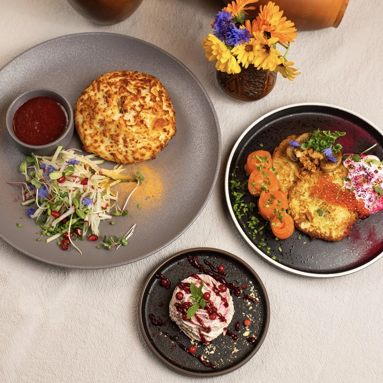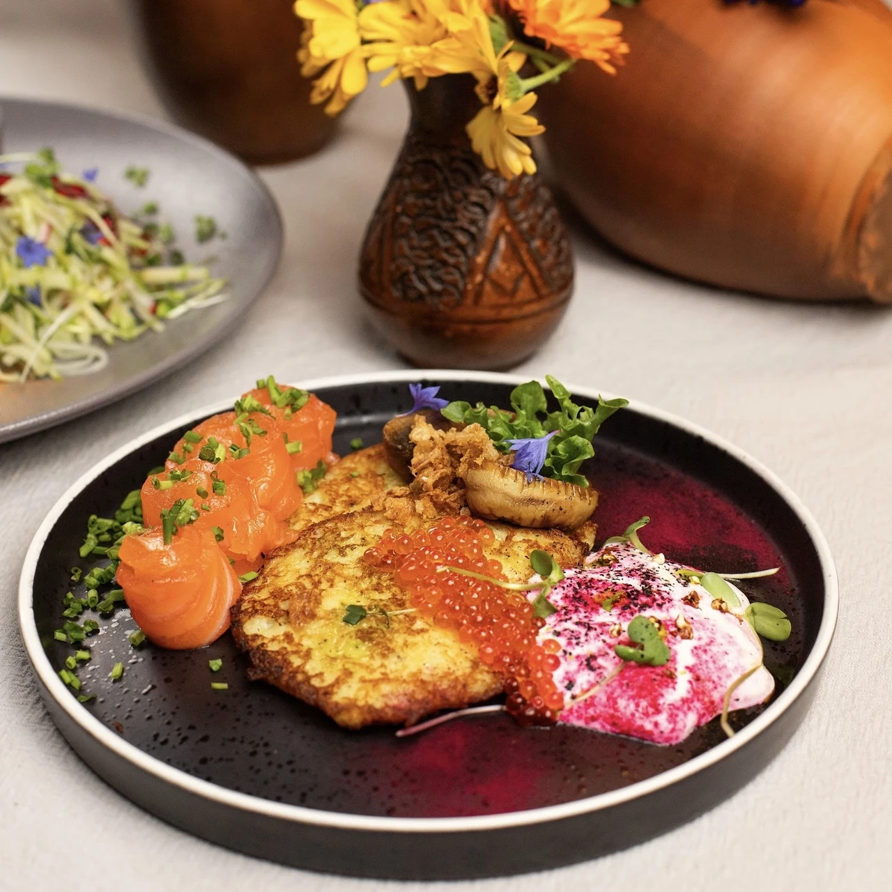 Õrnsoolalõhe, hapukoore-toorjuustuvaht - Hatšaburger (gruusiapärane hamburger)