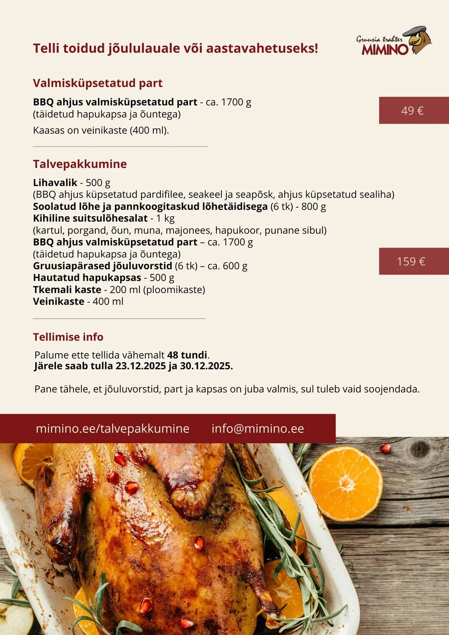 Järele saab tulla 23.12.2025 ja 30.12.2025.
